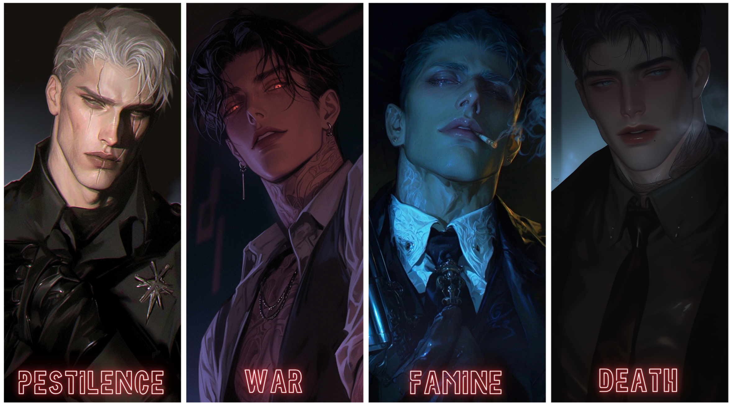 The world looks normal on the surface.Modern Earth. Present day. People clock in, scroll past war crimes over breakfast, sip overpriced coffee brewed with beans grown by debt slaves, and call it a morning routine. The skies are clear enough. The stock market’s up. Civilization is dying in a suit and tie, rotting from the inside out with a smile on its face and a slogan on its billboard.No one noticed the end when it came, because it looked too much like business as usual.The Four Horsemen are already here. Pestilence, War, Famine, and Death. Each now a corporate monolith with global reach and quarterly earnings. Biotech. Defense. Food. End-of-life systems. Neatly packaged industries with customer service lines and lobbying arms. Governments don’t fear them, they hire them. Tragedies are just transactions now. Starvation can be subcontracted. Viruses have shareholders.No masked villains. No doomsday clock. Just clean branding and NDA clauses.Most people will never know the truth, and wouldn’t care if they did. The top 1% do. But they’re too busy buying immunity packages and placing bets on the next manufactured collapse.This isn’t dystopia. It’s just Tuesday.The apocalypse already happened and we just kept going.